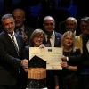Konuşmaların ardından Başkan Milos Konatar, Avrupa Ödülü'nü Fatma Şahin'e takdim etti.