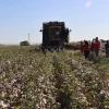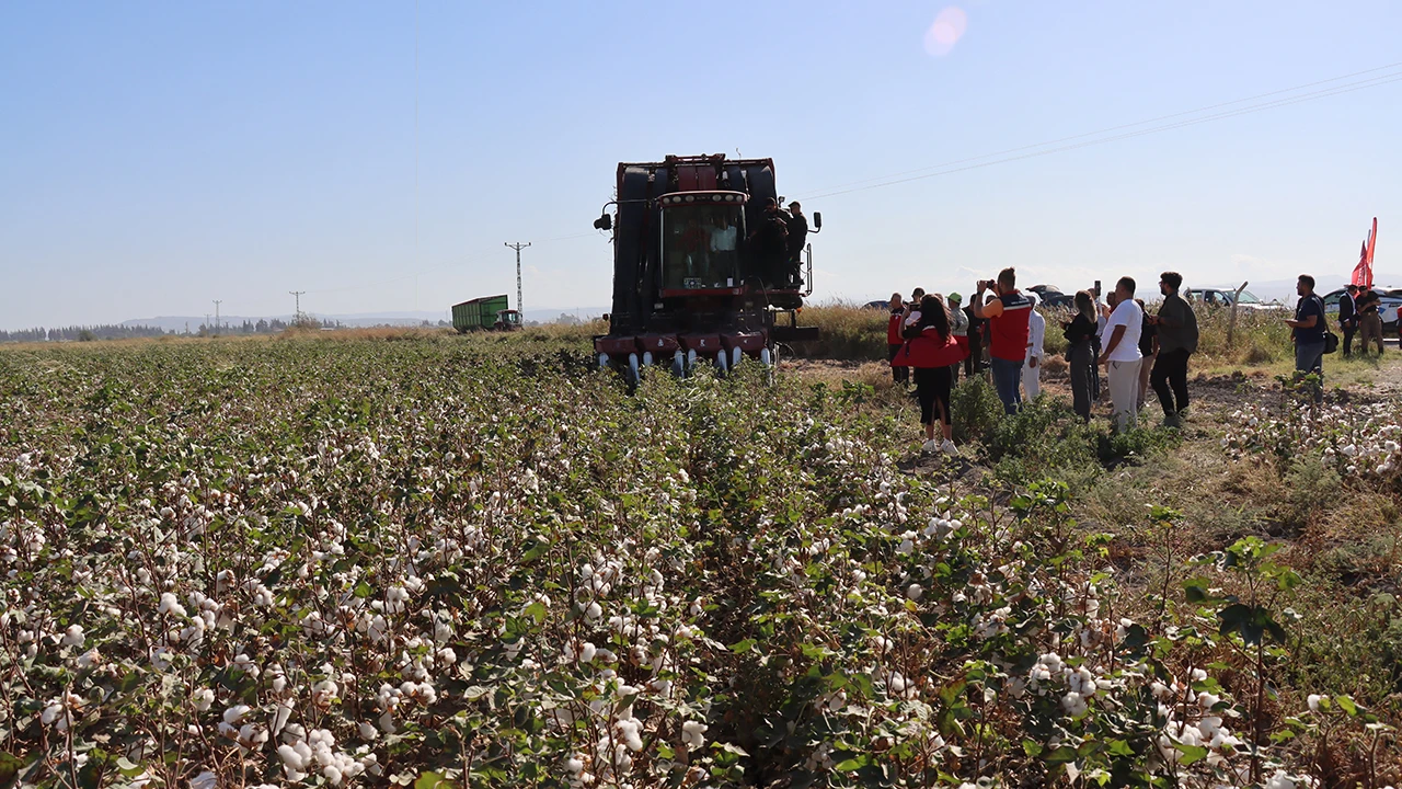 Pamuk hasat makinesine de binen Masatlı, gazetecilere yaptığı açıklamada, hasat döneminin tüm çiftçilere hayırlı olmasını diledi.