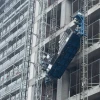 Yenibosna'da plaza inşaatının dış cephesindeki açık asansör, arıza nedeniyle üzerindeki 4 işçiyle birlikte bir tarafı sarkarak asılı kaldı.