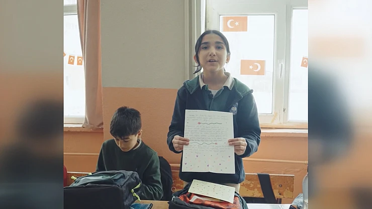 Ağrı'nın Diyadin ilçesindeki öğrenciler, Kahramanmaraş merkezli 6 Şubat 2023'te yaşanan depremlerden etkilenen Adıyamanlı arkadaşlarına mektup yazdı.