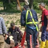 Kuyuya inen ekipler, halatla bağladıkları danayı iş makinesi yardımıyla sudan çıkardı.