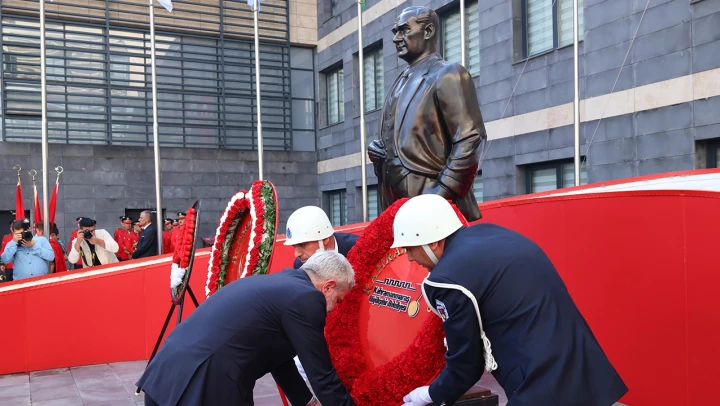 Cumhuriyet'in ilanının 102. yıl dönümü dolayısıyla düzenlenen kutlama etkinlikleri Atatürk Anıtı'na çelenk sunma töreniyle başladı.