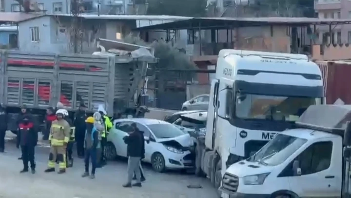 Belen-İskenderun kara yolunun Halilbey Mahallesi mevkisinde buzlanan yolda 4 tır, 3 otomobil, cip, kamyonet, panelvan ve minibüsün karıştığı zincirleme trafik kazası meydana geldi.