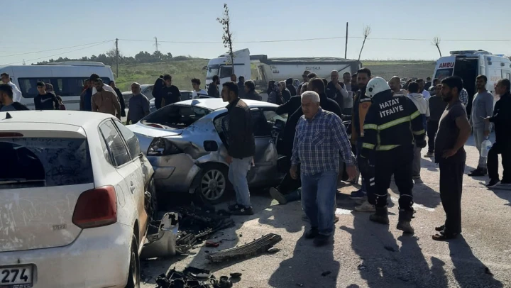 Hatay'ın Altınözü ilçesinde 4 aracın karıştığı zincirleme trafik kazasında 7 kişi yaralandı.