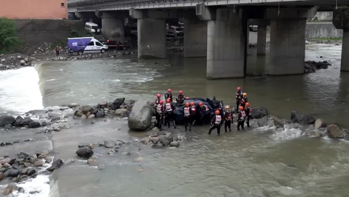 Dere içerisindeki araç ise dalgıçların yer tespitinin ardından iş makinesi yardımıyla sudan çıkarıldı.