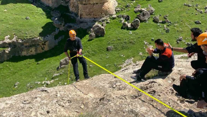 Batman İl Afet ve Acil Durum Müdürlüğü (AFAD), afetlere karşı daha etkin ve profesyonel müdahale sağlamak amacıyla Hasankeyf ilçesinin engebeli arazisinde geniş kapsamlı bir tatbikat gerçekleştirdi.