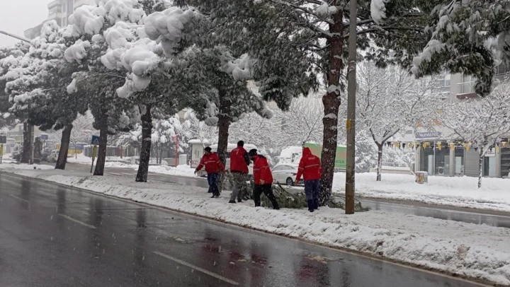 Kahramanmaraş Büyükşehir Belediyesi, şehir genelinde etkili olan yoğun kar yağışı nedeniyle kırılan ağaç dallarına karşı hızlı ve kapsamlı bir çalışma yürütüyor. Karın ağırlığıyla zarar gören ağaç dallarının oluşturabileceği riskleri ortadan kaldırmak amacıyla ekipler sahada yoğun mesai harcıyor. Kent Estetiği ve Yeşil Alanlar Dairesi Başkanlığı ekipleri, özellikle şehir merkezinde kar yağışı neticesinde kırılan ağaç dallarını titizlikle toplayarak yaya ve araç güvenliğini tehdit edebilecek olumsuzlukların önüne geçiyor.