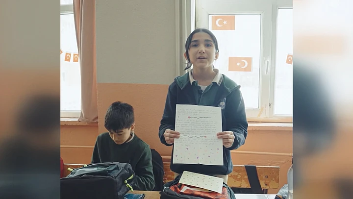 Ağrı'nın Diyadin ilçesindeki öğrenciler, Kahramanmaraş merkezli 6 Şubat 2023'te yaşanan depremlerden etkilenen Adıyamanlı arkadaşlarına mektup yazdı.