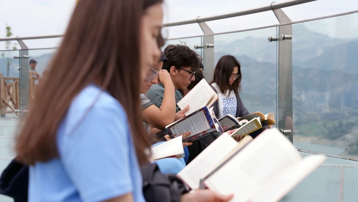 Etkinlik kapsamında farklı yaş gruplarından gençler, Ali Kayası'nın kartpostalları aratmayan eşsiz manzarasına karşı kitaplarını ellerine alarak sessiz bir edebiyat yolculuğuna çıktı.