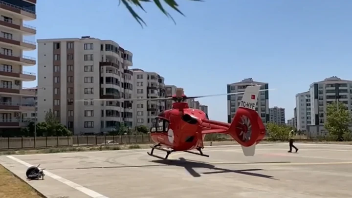 Diyarbakır'ın Çüngüş ilçesinde felç geçirdiği tespit edilen kişi, ambulans helikopterle hastaneye ulaştırıldı.