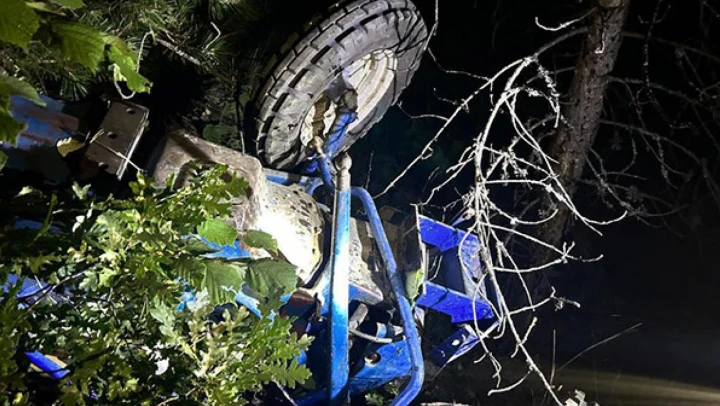 Malaklar Mahallesi Orman Deposu mevkisinde, Adem Bulut yönetimindeki 33 DB 580 plakalı traktör, henüz belirlenemeyen nedenle orman yolunda kontrolden çıkarak uçuruma yuvarlandı.