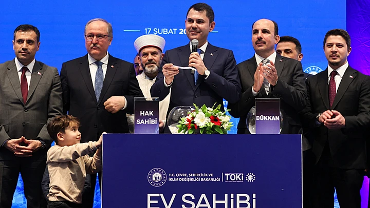 Konya'daki Ev Sahibi Türkiye-15 bin 200 Konut Kura Çekim Töreni'ne katılan Çevre, Şehircilik ve İklim Değişikliği Bakanı Murat Kurum, deprem bölgesinde tamamlanan Asrın İnşa Seferberliği'ne dikkat çekerek Milletimizle omuz omuza verdik, 'Asrın Dayanışması'nı sözde değil sahada gösterdik, dedi.
