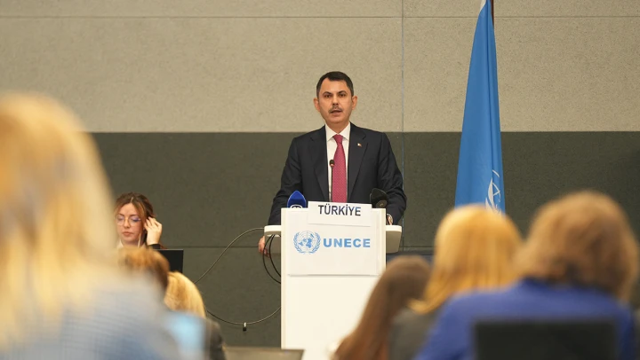 Çevre, Şehircilik ve İklim Değişikliği Bakanı Murat Kurum, Cenevre'de Birleşmiş Milletler Avrupa Ekonomik Komisyonu'nun Bakanlar Toplantısı'nda Türkiye'nin inşa tecrübesini, sosyal konut projeleri ve asrın felaketinin ardından 11 ilde devam eden çalışmaları örnek göstererek anlattı.