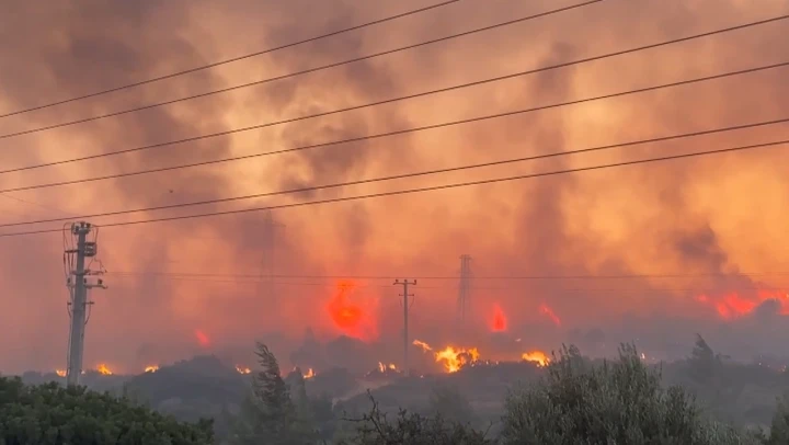 Ildır Mahallesi'ndeki ziraat alanında çıkan yangın, rüzgarın etkisiyle bölgedeki ormanlık alana sıçradı. İhbar üzerine bölgeye İzmir Orman Bölge Müdürlüğüne bağlı 6 uçak, 19 helikopter, 39 arazöz, 14 su ikmal aracı ve 4 dozer ile itfaiye ekipleri sevk edildi.
