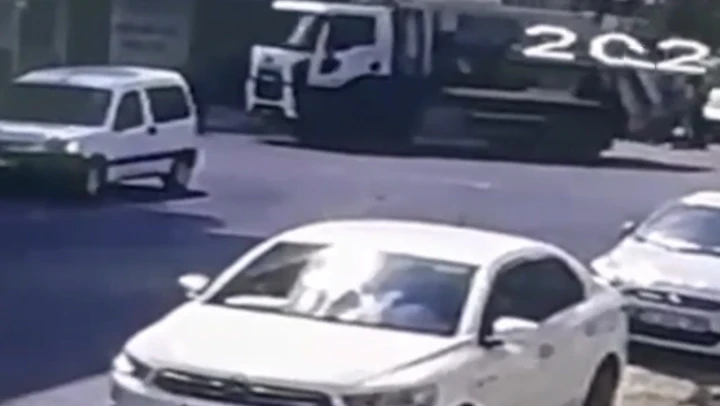 Kamyon sürücüsü gözaltına alındı. Bu arada kaza anı, çevredeki bir güvenlik kamerasınca kaydedildi.