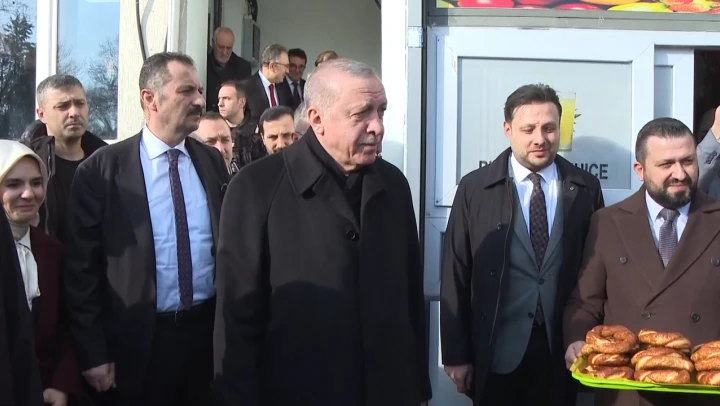 Cumhurbaşkanı Recep Tayyip Erdoğan, Beyoğlu'nda yaptığı bir ziyaretin ardından kendisini bekleyen basın mensuplarının 10 Ocak Çalışan Gazeteciler Günü'nü kutladı.