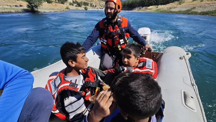 Debisi yükselen nehirde mahsur çocukları AFAD ekibi kurtardı