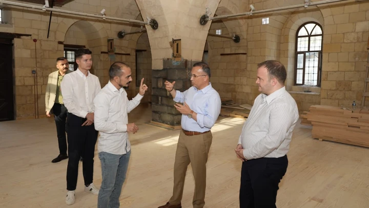 Restorasyonu tamamlanan bu tarihi yapıları yerinde inceleyen Vali Kemal Çeber ve Vakıflar Bölge Müdürü Erdoğan Tunç, yüklenici firma yetkililerinden bilgi aldı.