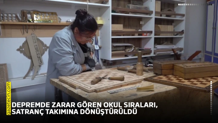 Kahramanmaraş'ta 6 Şubat 2023 depremlerinde hasar gören okul sıraları, Sıfır Atık Projesi kapsamında geri dönüştürülerek kentin kültürel simgelerini yansıtan el yapımı satranç takımına dönüştürüldü.
