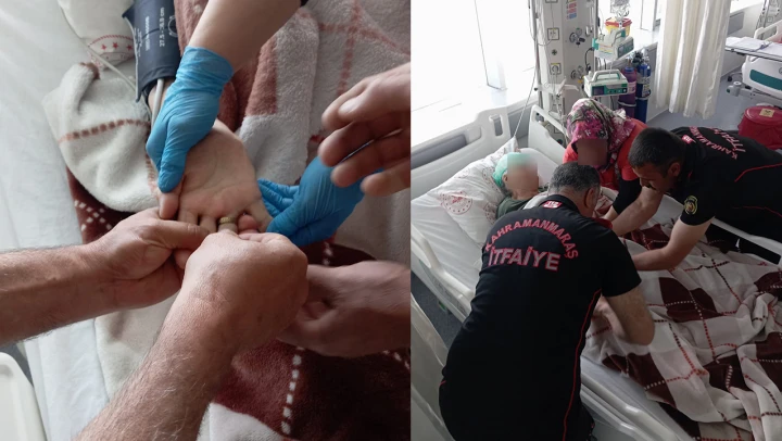 Ancak yüzüğün çıkarılamaması üzerine Kahramanmaraş Büyükşehir Belediyesi İtfaiye Daire Başkanlığı'na bağlı ekipler hastaneye sevk edildi.
