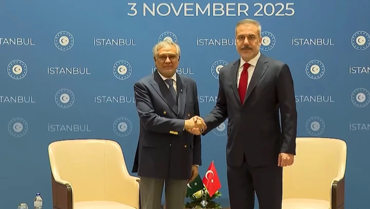 Dışişleri Bakanı Hakan Fidan, İstanbul'da düzenlenen Gazze konulu toplantı öncesinde Pakistan Dışişleri Bakanı Mohammad Ishaq Dar ile bir araya geldi.