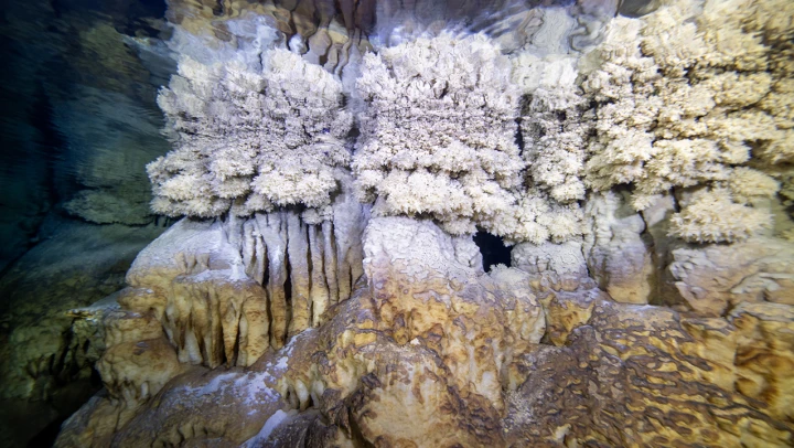 Eğitmen Mahmut İğde de 'Burada efsane bir su altı güzelliği var. Muhteşem oluşumlar, dikit ve sarkıtlar, su altı dünyası var.' ifadesini kullandı.