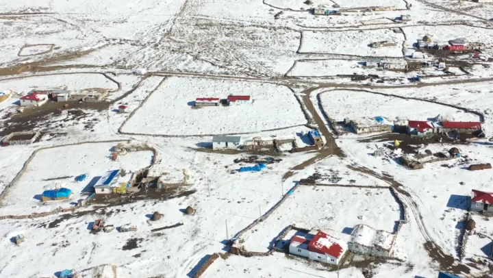 Kars-Göle kara yolunda 2 bin 300 rakımdaki köyler karla kaplandı. Besiciler hayvanlarını otlatmak için karın olmadığı bölgelere indiriyor.
