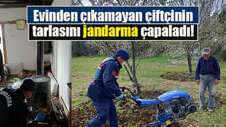 Evinden çıkamayan çiftçinin tarlasını jandarma çapaladı!