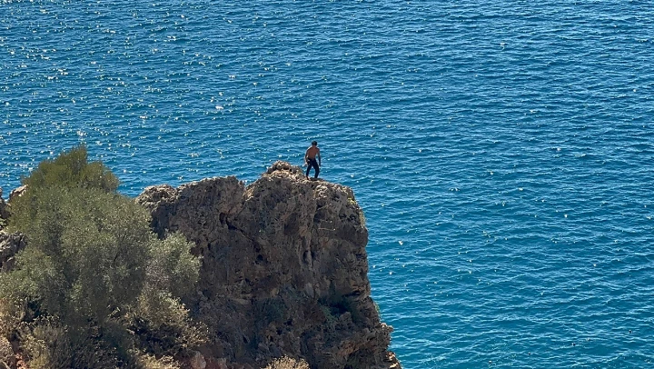 Antalya'da girişin yasak olduğu falezlerden denize atlayan bir grup genç ekipler tarafından ikna edilip bölgeden uzaklaştırıldı.