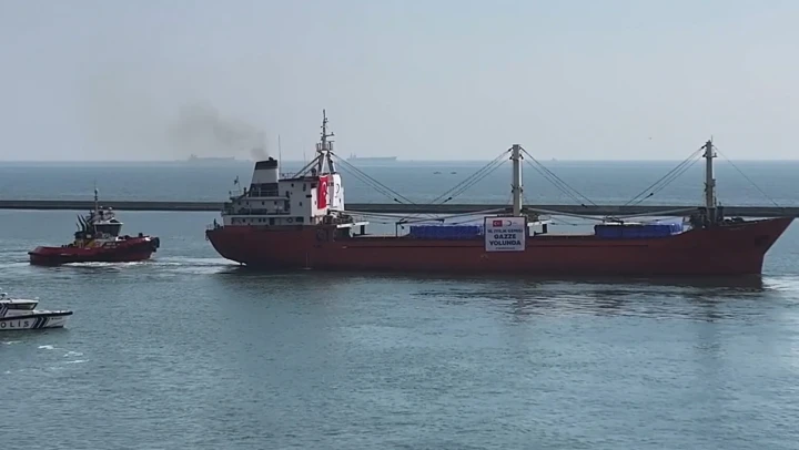 Türk Kızılayın Gazze'ye gönderilmek üzere hazırladığı, içerisinde yaklaşık 800 ton insani yardım malzemesi bulunan 18. 'İyilik Gemisi', Mersin Uluslararası Limanı'ndan uğurlandı.
