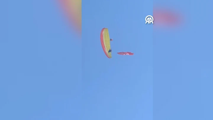 Gösteri uçuşu yapan paramotor kamyonetin üzerine düştü