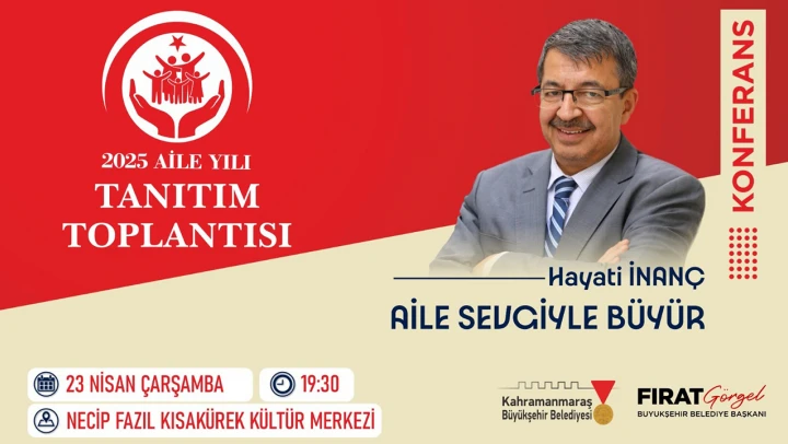 Kahramanmaraş'ta, Aile Yılı kapsamında 23 Nisan Çarşamba günü NFK Kültür Merkezi'nde özel bir program düzenleniyor. Programda ailelere yönelik projelerin tanıtımı, 'Aile Belgeleri' temalı sergi ve Hayati İnanç söyleşisi vatandaşlarla buluşacak.