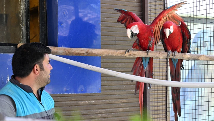 Tropikal kuşlar bölümünün görevlisi Resul Erkek, papağanların beslenme, bakım ve tedavi gibi tüm ihtiyaçlarıyla yakından ilgileniyor.