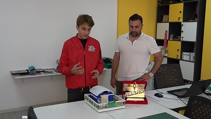 Mardin'de Prof. Dr. Aziz Sancar Bilim ve Sanat Merkezi'nde ortaokul öğrencisi Eren Özdemir, hayvanların afet anında kaçabilmelerini sağlayan yapay zeka destekli otomatik tahliye sistemi tasarladı.