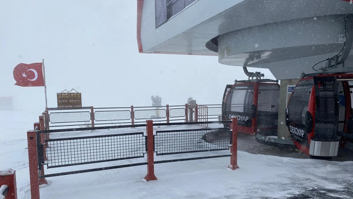Kayak merkezindeki tesislerin bulunduğu 2 bin 200 rakımdaki Tekir bölgesi, Hacılar Kapı ve Develi Kapı'da etkili olan kar yağışı devam ediyor.
