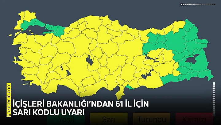 İçişleri Bakanlığı'ndan 61 il için sarı kodlu uyarı