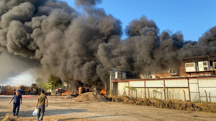 Antalya'nın Serik ilçesinde iki firmaya ait depolarda çıkan yangına itfaiye ekipleri müdahale ediyor.