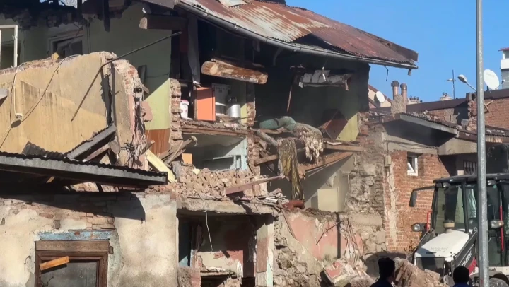 Olayda patlama yaşanan evde büyük çapta hasar oluştu.
