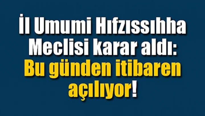 İl Umumi Hıfzıssıhha Meclisi karar aldı: Bu günden itibaren açılıyor