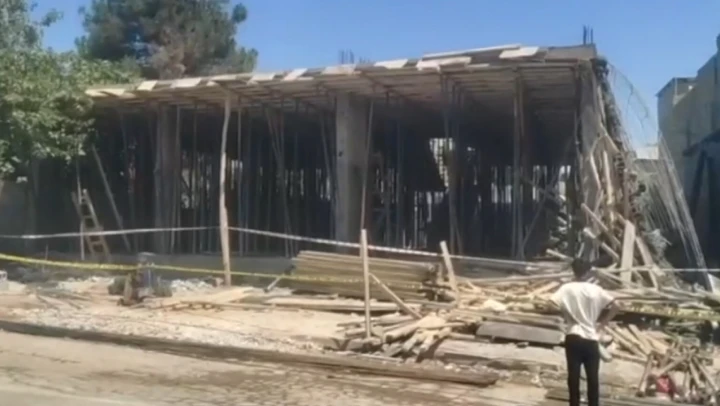 Hürriyet Mahallesi Tılbender Caddesi'nde yapımı süren inşaatın birinci katında, beton dökülen tabla henüz belirlenemeyen nedenle çöktü.