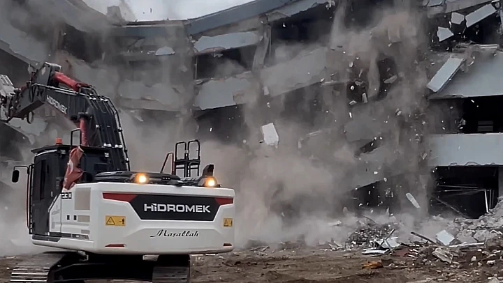 İş makinesinin birkaç metre uzaklaşmasının ardından bina çöktü. Operatör, çöken binanın altında kalmaktan birkaç saniye ile kurtuldu. İş makinesinin uzaklaşması ve binanın çökmesi, cep telefonu kamerasıyla görüntülendi.