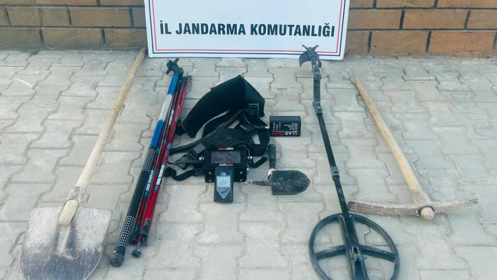 Zanlıların kazı yaptıkları bölgelerde, 2 dedektör, 3 kazma, 3 kürek, 2 matkap ucu, matkap, 2 emniyet kemeri, 2 çelik halat ve 3 uzatma kablosu ele geçirildi.