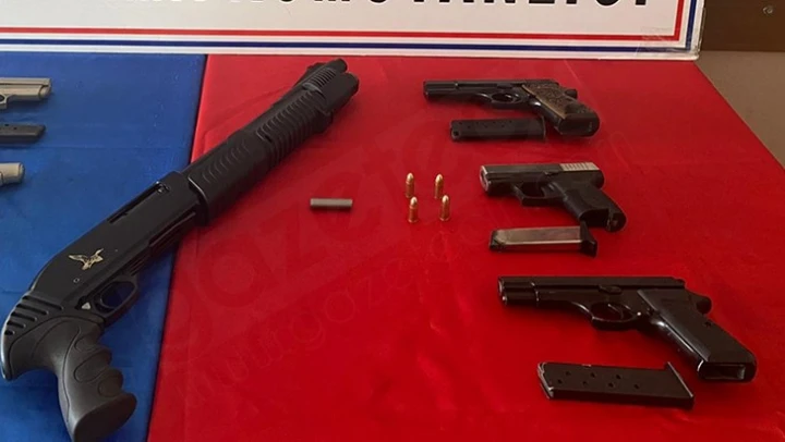 Adresteki aramada 6 ruhsatsız tabanca ve bir pompalı av tüfeği ile silah imalatı ve tamirinde kullanılan malzemeler ele geçirildi.