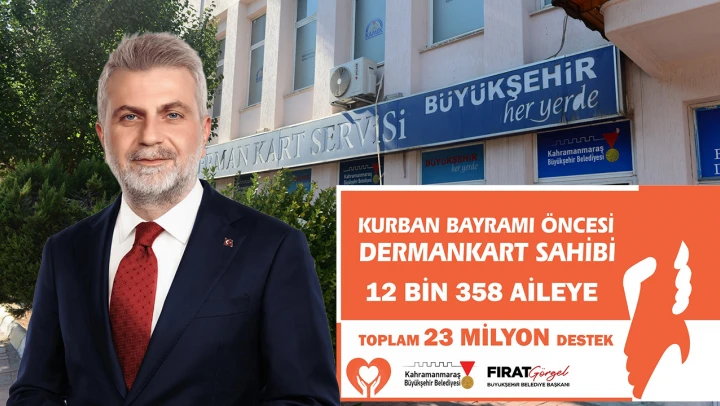 Kahramanmaraş'ta Kurban Bayramı öncesi Dermankartlı 12 bin 358 aileye 23 Milyon TL maddi destek sağlandı. Başkan Görgel, 'Özellikle bayram gibi dayanışmanın, paylaşmanın ön planda olduğu zamanlarda vatandaşlarımızın yanında olmak bizim en temel görevimiz' dedi.