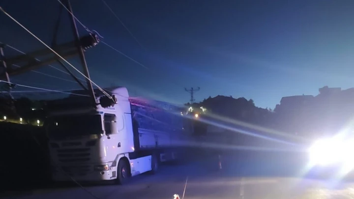 Kahramanmaraş'ın Andırın ilçesinde gece saatlerinde şiddetli fırtına nedeniyle bir facia ucuz atlatıldı. Andırın Devlet Hastanesi önünde seyir halindeyken elektrik direğinin devrilmesi sonucu kablolar arasında kalan TIR, paniğe neden oldu.