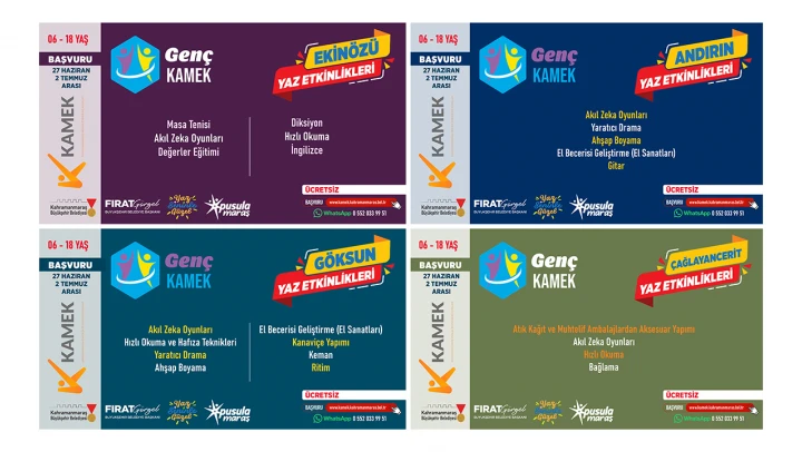 Kahramanmaraş Büyükşehir Belediyesinin Ekinözü, Göksun, Andırın ve Çağlayancerit'te 6 – 18 yaş aralığındaki gençlere yönelik düzenleyeceği yaz kurslarına başvurular başladı. Çevrimiçi olarak yapılabilen başvurularda son gün 2 Temmuz Çarşamba.