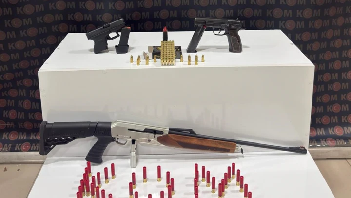 Afşin ilçesinde belirlenen adreste yapılan aramada, ruhsatsız 2 tabanca ile 1 yivsiz tüfek, 2 şarjör ve 105 fişek ele geçirildi.