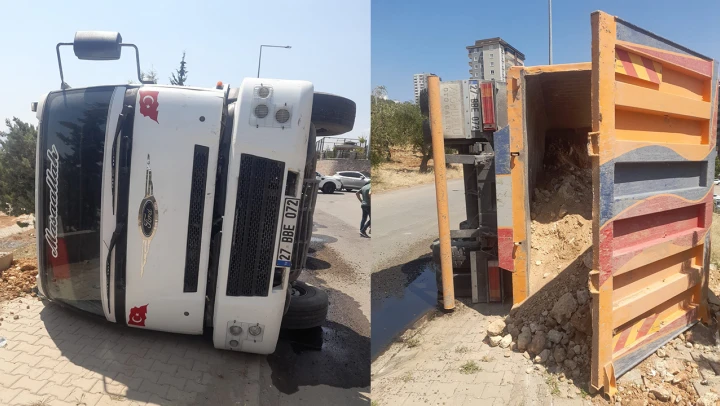 Kahramanmaraş'ın Onikişubat ilçesi Cumhuriyet Mahallesi'nde bugün öğleden sonra kontrolden çıkan kum yüklü bir kamyon yan yattı. Saat 16.00 sularında meydana gelen kazada, kimliği henüz açıklanmayan sürücü sıkıştığı yerden itfaiye ekiplerince kurtarıldı.