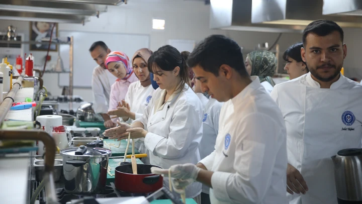 Kahramanmaraş İstiklal Üniversitesi (KİÜ) Gastronomi ve Mutfak Sanatları Bölümü öğrencileri, Türk Mutfağı Haftası kapsamında Çerkez yemekleri yaptı.