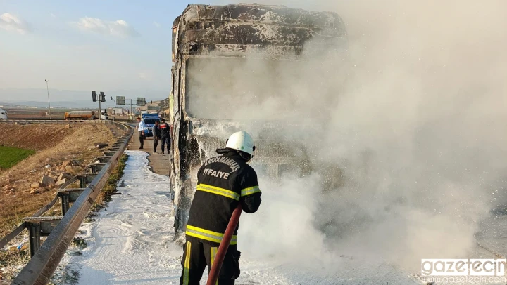 Kahramanmaraş Gaziantep karayolunda akşam saatlerinde meydana gelen yangın, sürücüler arasında paniğe yol açtı. Beton mikseri taşıyan TIR, henüz belirlenemeyen bir nedenle alevler içinde kaldı. Yangın müdahalenin ardından söndürüldü.